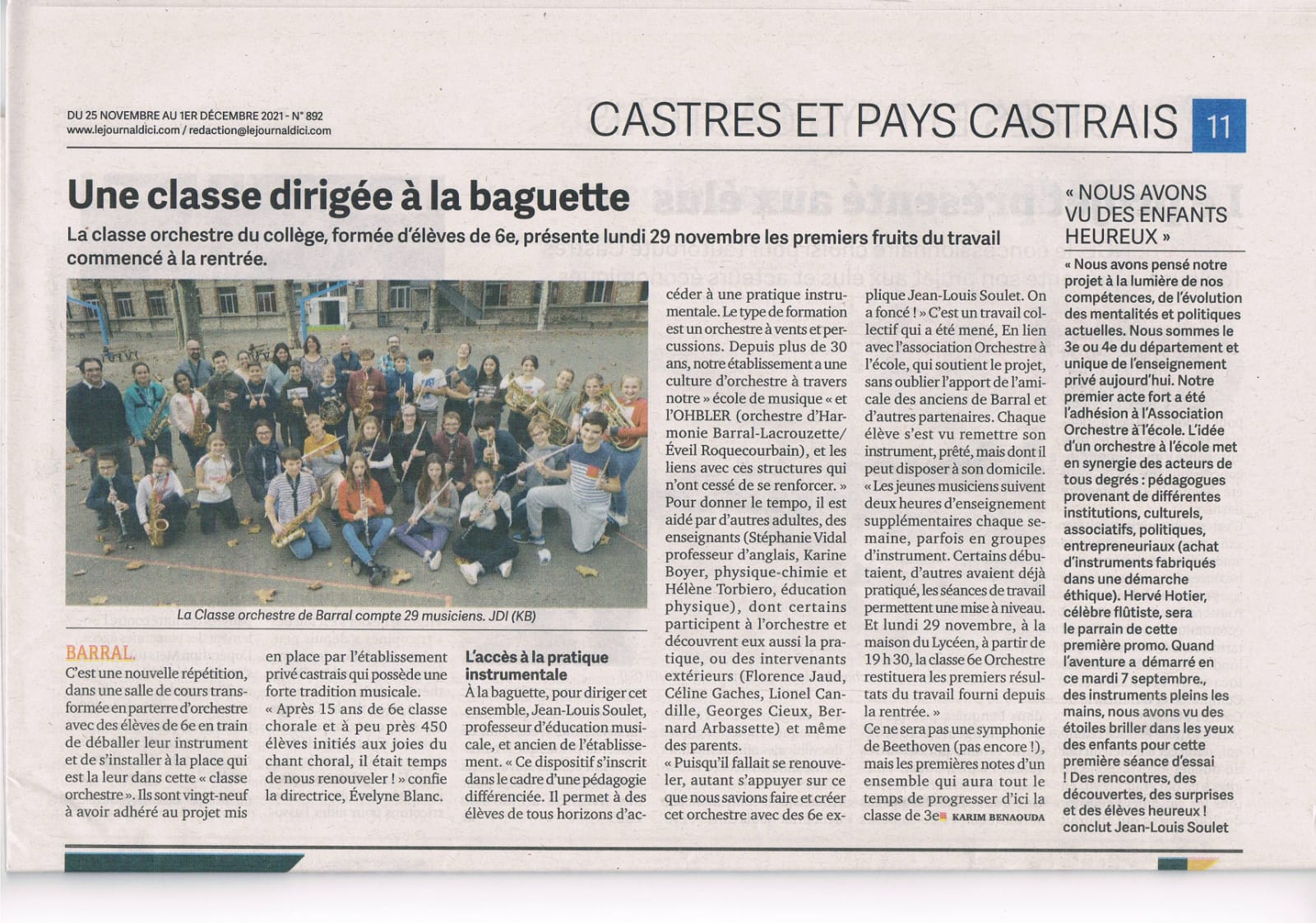 Dans sa mission de valorisation de la musique d’harmonie, le Fonds de dotation Orphée et l’Eveil Roquecourbain ont décidé d’apporter leur soutien à la création de la classe 6° Orchestre du collège Barral : partenaire d’enseignement artistique (partage des compétences, mise à disposition de professeurs) et aide financière (achat d’un instrument) ont donné un coup de pouce à ce projet qui permet de rendre accessible l’apprentissage d’un instrument à des enfants de tous horizons.